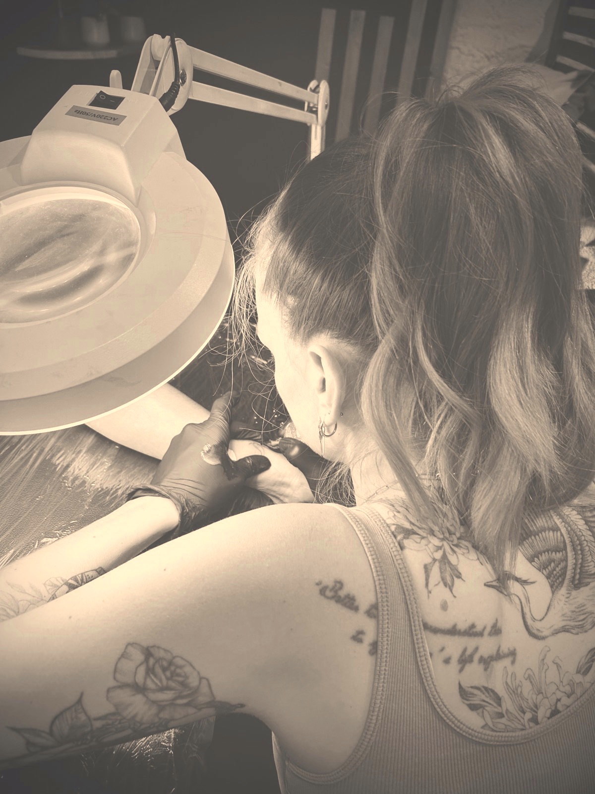 En tant qu'artiste tatoueuse, ma mission est de t'accompagner à chaque étape. Mon approche est simple: écouter, conseiller et créer.